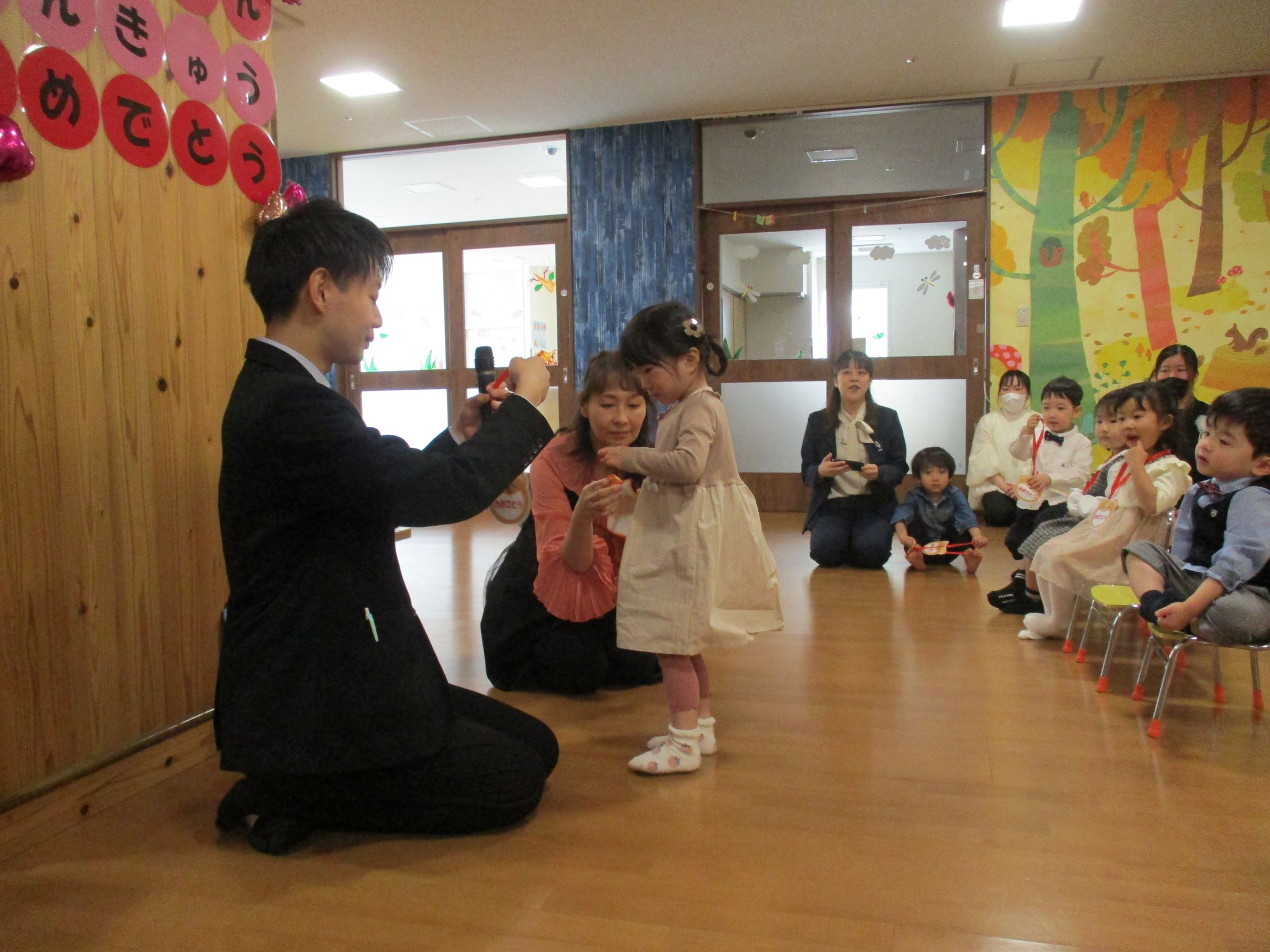 今年度も入園・進級した子にはメダルの授与を行いました。