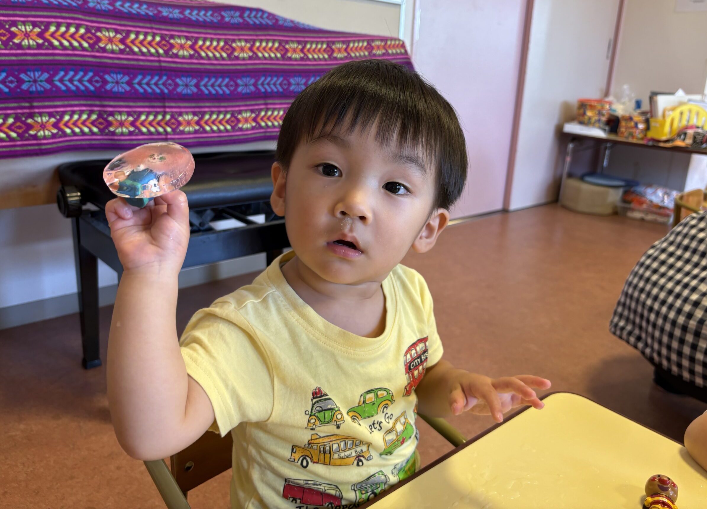 お水や氷でもたくさん遊びました。氷を溶かして人形を取り出し大喜び!