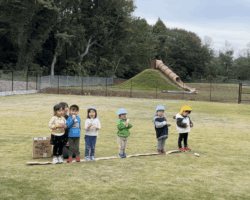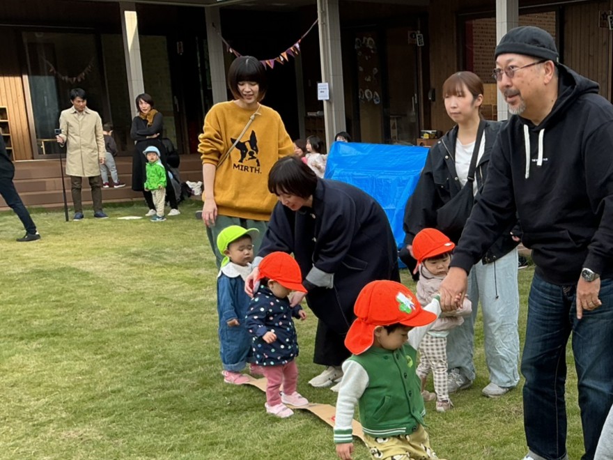 1歳児クラスさんは初めての親子競技で緊張している様子…