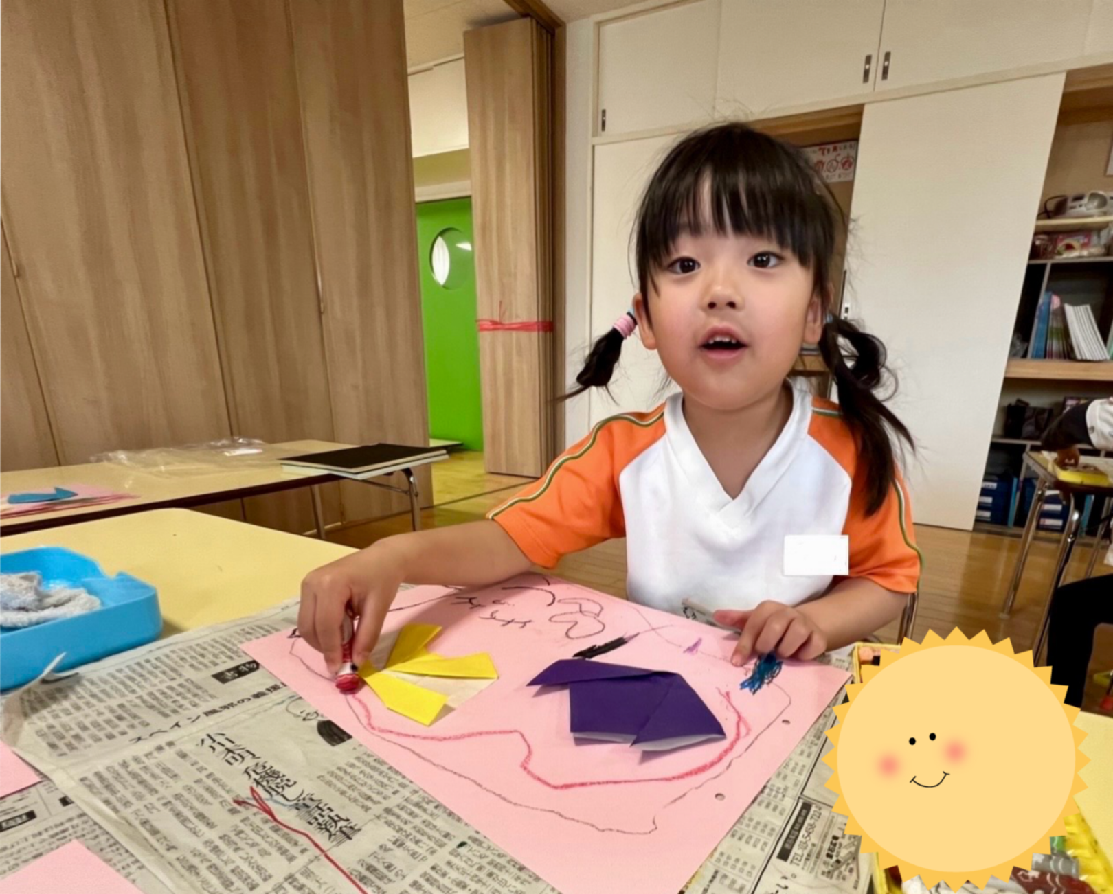 指先を使って丁寧に折り進めながら、「こんな色にしたよ!」「とんでいきそう〜!」と、それぞれのイメージをふくらませながら取り組む姿が見られました。