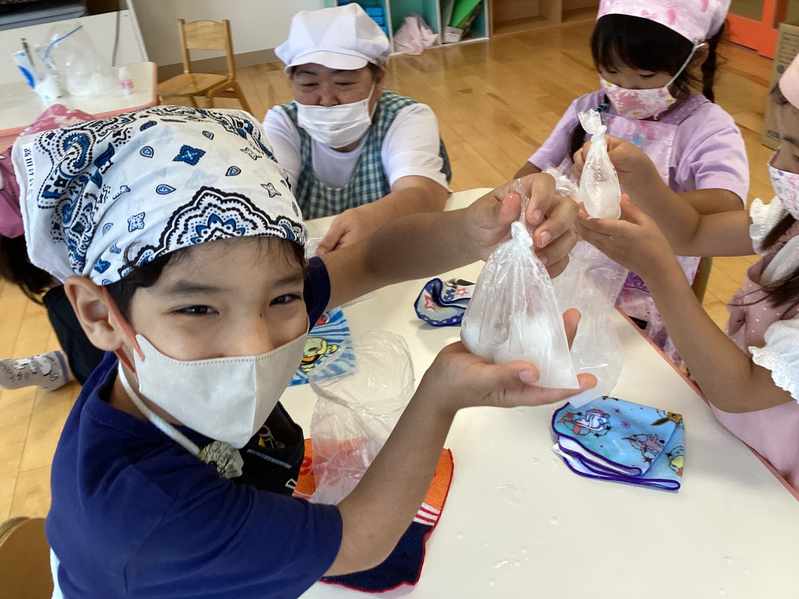 今月、クジラ組さんで「もみもみシャーベット」を作りました。