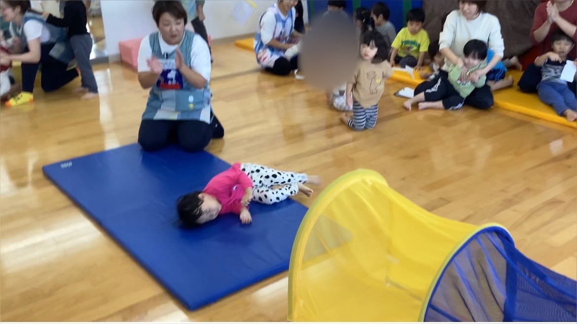 1歳児はマット転がりとトンネルくぐり