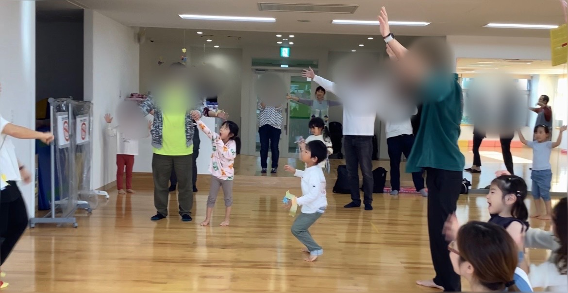 午後は保護者の方と一緒に体操と猛獣狩りにいこうよを行いました。