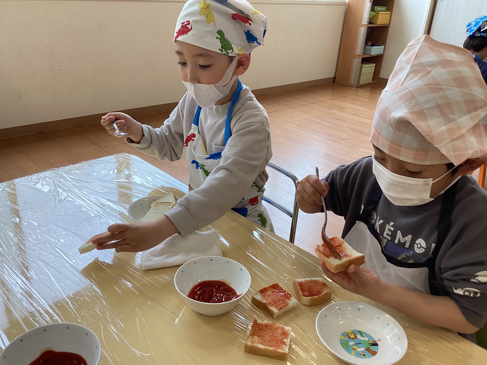 朝からクッキングが楽しみな様子で「今日クッキングだよね!」と給食室に顔を出す子ども達♪