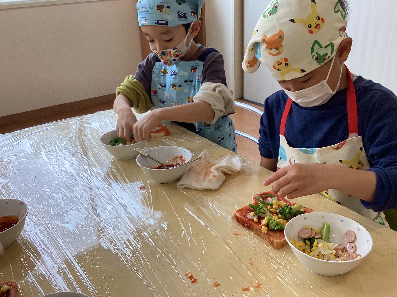 自分の好きな具材をたくさんトッピングするなど、個性豊かなピザを作ることができましたよ😊