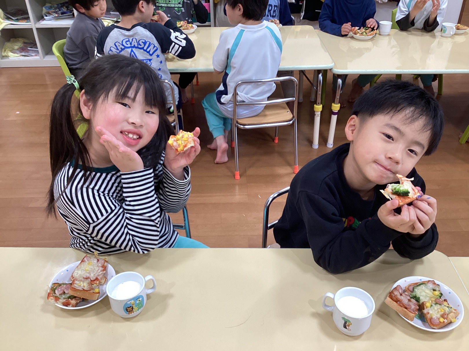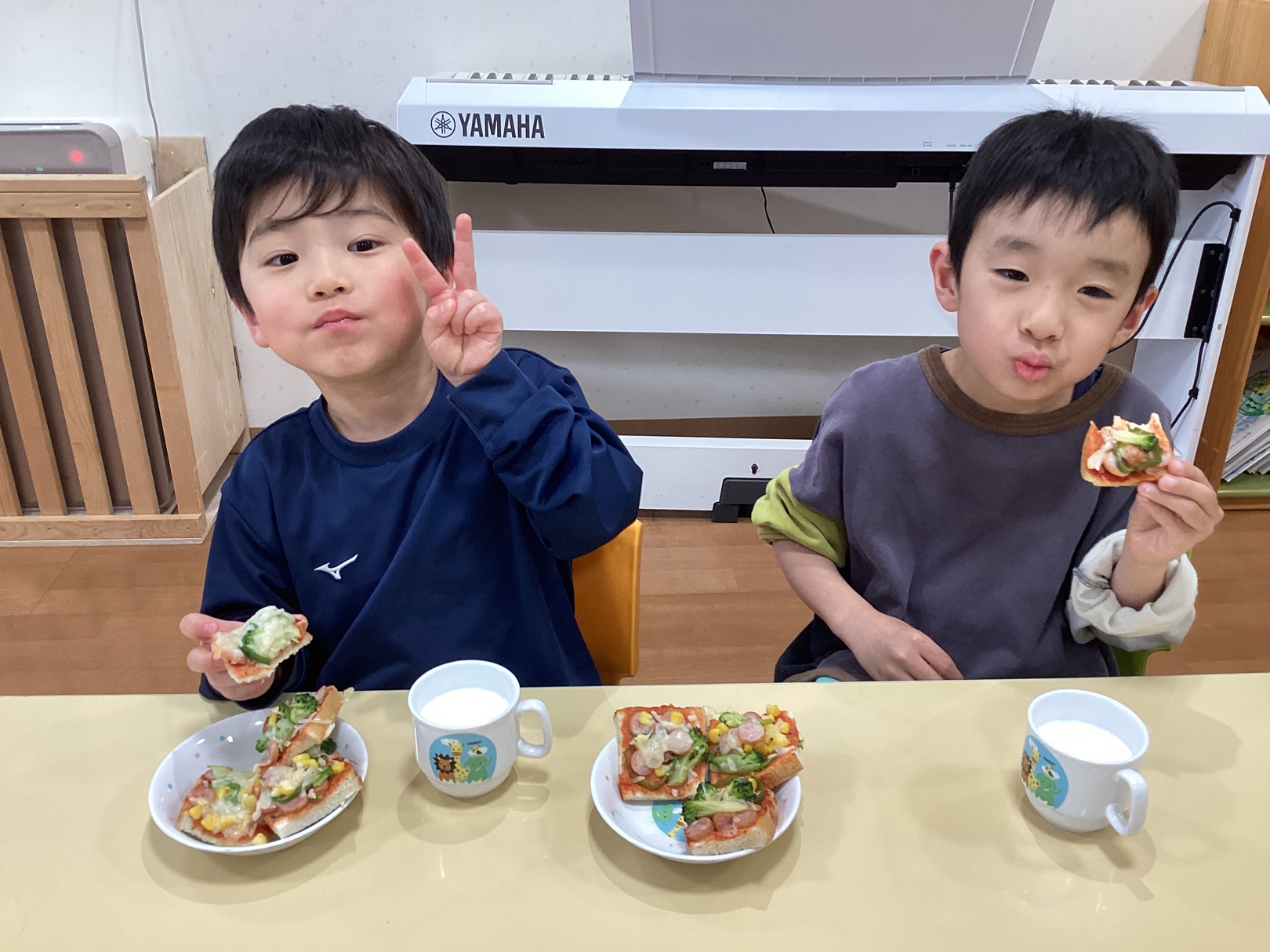 いつもより多い量のピザパンでしたが「おいしいおいしい!」と夢中になって食べており、
